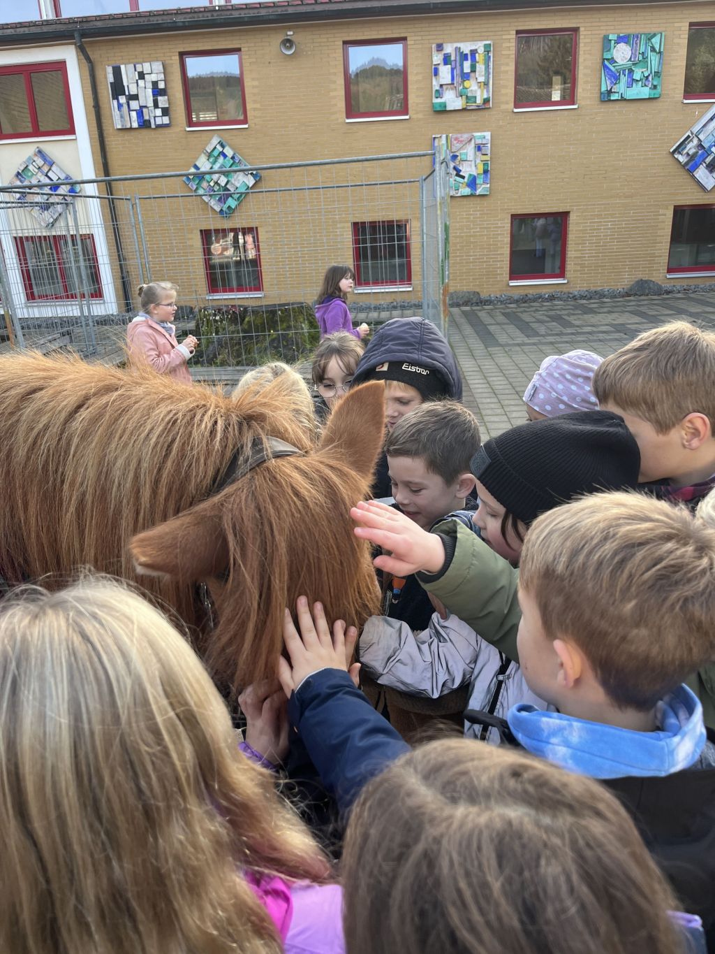 Das anschließende Highlight der Kinder: sie durften das Pferd streicheln. Außerdem gab es vom Förderverein wieder Martinsbrötchen zum Teilen.